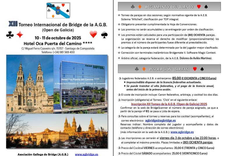 10/10/2025 11/10/2025 | XII Open de Galicia | Santiago de Compostela |